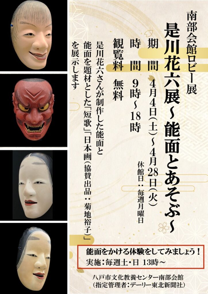 ※期間中の土日、13時より能面をかける体験ができます。